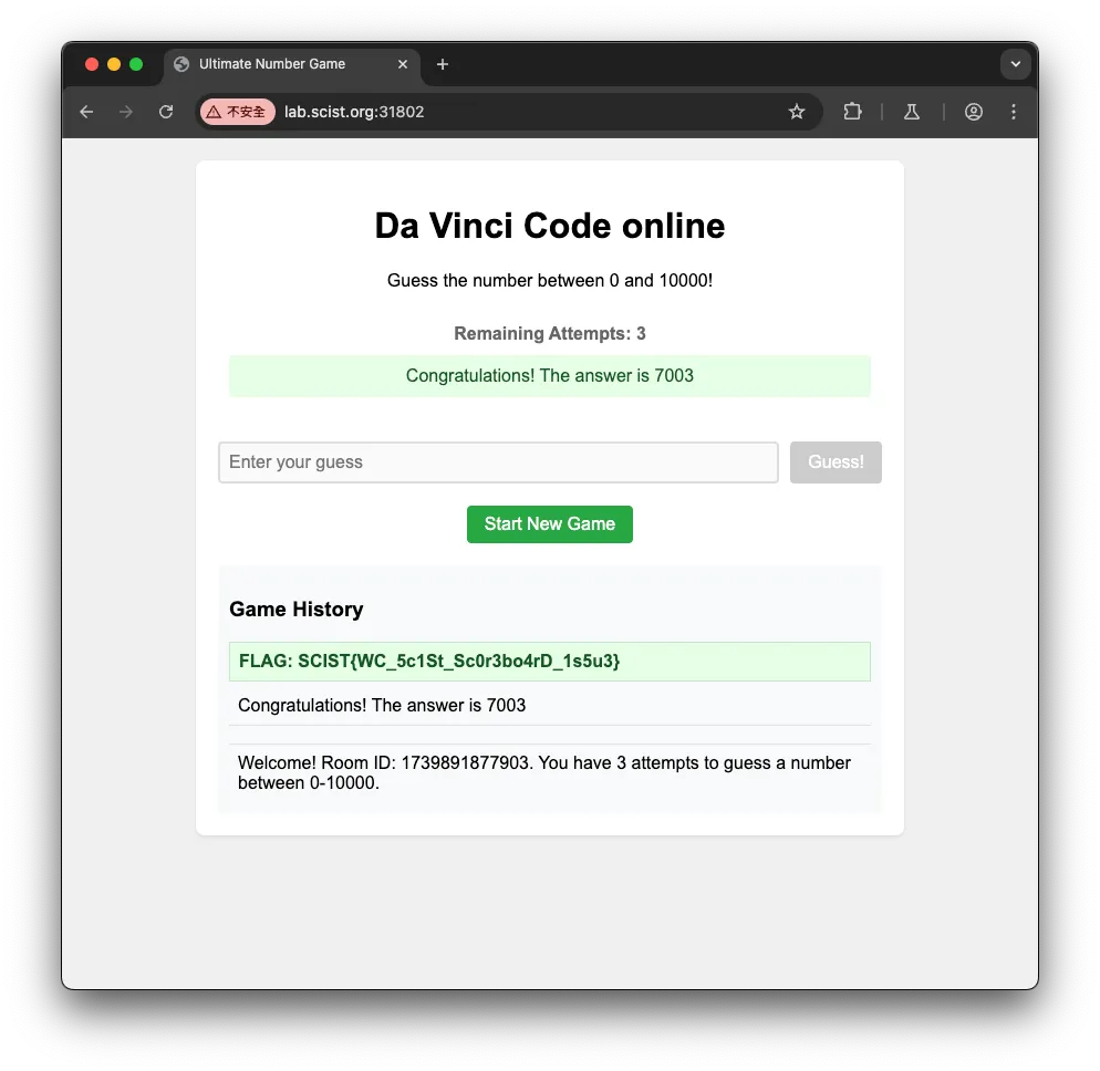 這是一個猜數字的網站,只有三次機會,Range 0~10000,就是希望你去找問題不是盲猜w